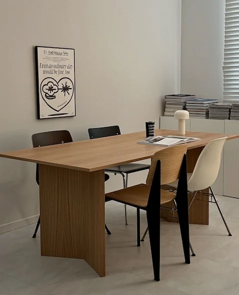 인테리어 견적 비교를 해보면 주방 가구 교체 비용이 만만치 않은데, 저는 기존 가구의 프레임은 살리고 문짝만 시트지 리폼 노하우를 활용해 화이트로 바꿨어요. 여기에 원목 테이블과 모던한 의자가 어우러진 거실 다이닝 공간을 구성하면 아이 안전과 감성을 모두 잡은 따뜻한 원목 다이닝 공간이 완성되네요. 아래 표는 제가 직접 경험하며 느낀 일반적인 리모델링과 제가 추구하는 방식의 차이점이에요.