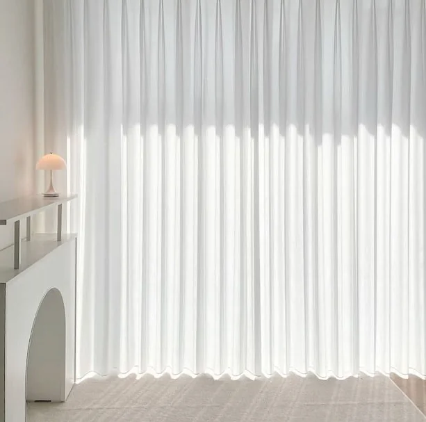 화이트 인테리어를 완성할 때 가장 고민되는 부분이 바로 창문 홈스타일링 팁일 텐데요. 기존에 쓰던 얇은 시폰 커튼은 밤에 실내조명을 켜면 외부에서 집 안이 훤히 들여다보이는 단점이 있었어요. 반면 이번에 선택한 도톰한 쉬폰 원단은 밀도가 높아 비침 방지 기능이 탁월하더라고요. 낮에는 은은하게 빛을 머금어 공간이 화사해지고, 밤에는 안심하고 생활할 수 있어서 마음이 편안해요. 두께가 있다 보니 에어컨이나 히터 바람을 한 번 더 막아주는 역할도 톡톡히 해내네요.