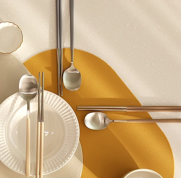 좁은 원룸부터 넓은 다이닝룸까지, 식기의 색상 조합과 배치에 따라 다양한 홈카페 플레이팅을 완성할 수 있습니다. 한식 양식 공용 수저 디자인이라 어떤 메뉴와도 이질감 없이 잘 어울리는 것이 특징입니다.